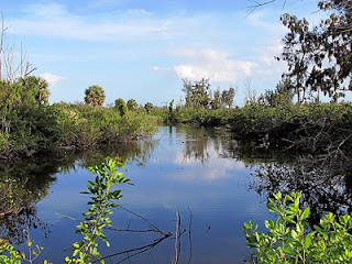 My walk registered on my GPS as 9.3 miles; this entailed almost all the roads that wind through the state park. I did some doubling back at times, but a fair portion of the walk was on different roads and trails. I parked at the South Beach Community Park, as there weren’t any other places that I could see - this may change in the future. I walked down the road towards Honest Johns Fish Camp, cutting into the area around the main sign. From there I headed out to Snagg Point and around that area. You will have some nice views of the Indian River Lagoon from this area. I ran into fences put up by Honest Johns Fish Camp at two places on the road. As I worked my way back I found what seems to be a bike trial being cut through the wooded area - no idea what it actually was. I then proceeded up to the Maritime Hammock Sanctuary, wandering around the edge of that for a while. I then worked my way back to the park entrance and back to my car.