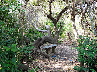 This is the longest of the three sanctuary hikes and also my favorite. It used to be just a little over 2 miles, but sometime in 2010 the EEL Group opened up more trails into the northern section. The hike starts at a small parking area off A1A where you will find an information station with a trail map. The trail winds into the woods along a boundary fence which separates the sanctuary from a residential neighborhood. Though the homes are located in the center of the sanctuary, the trails are relatively private, tranquil and peaceful. As you walk along you forget civilization is a stones through away and really can lose your thoughts in the “wilderness” of your surroundings. You will find a number of benches along the trail as well as bridges and boardwalks which afford you the luxury of staying dry. One bench is located just off the trail and has a very pretty view of a canal. The newer trail sections branch off through a small wooded section and then into a large open area with a beautiful pond. Around the pond you will find some spectacular oaks graced with spanish ivy. The day I hiked around the pond there were some coots, ducks and wading birds. There also is a new entrance to the sanctuary provided off Pelican Drive. This entrance has been decorated with some driftwood to add to the charm. After looping around the pond the trail leads down and then along the Indian River Lagoon. The views of the lagoon are spectacular. . The trail then goes back to what is actually an old dirt road which winds through the sanctuary. This section of the trail brings you to a bridge over the canal that will lead you back to the foot trail. This section is scenic as well. You will be walking along boardwalks over some salt marshes as you meander along the trail. Eventually a lookout area appears giving you a view of a small lagoon in the woods. There have been a number of wading birds spotted in this area. The rest of the trail is picture perfect in many areas, with some ornate scrub oaks as well as other types of trees. Many benches are provided in this section where you can stop, snap a picture with your cellphone and share the beauty of the trail with someone. Eventually you will windup back on A1A, where your options are to walk back along A1A to your car or retrace your steps back along the trail.
