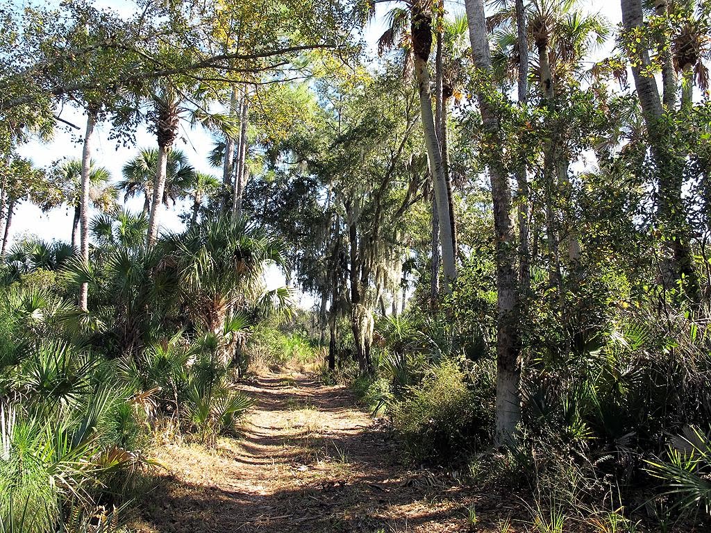 2. Main Parking Area, heading North (N28 37.148 W80 57.943). There is a road leading out of the parking area which will take you down by the St Johns River and then back up by a small lake towards Lake Ellis. I ventured off this road a few times to explore some of the game trails. I also placed a couple of GEOCaches in that area. Depending on which roads you elect to take you can venture up pretty far north or as I did, take one of the roads to the right and loop back to the parking area. I had to cross some water and then hiked back on part of Hatbill Road because there were no other roads/trails going south. When I got back down near the parking area I ventured into the woods along a road and found another very pretty section to explore. You do have to be careful when anywhere along the St Johns River, as SJRWMD has a very liberal hunting policy, meaning that the presence of hunters is always a possibility.