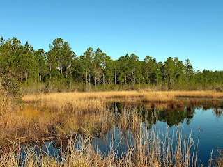 I spent a couple of days exploring the preserve and found much of the variety of natural communities mentioned above. The major problem is that there are wetlands in the preserve, mainly over near Lake Mary Jane. You can just get so far before you hit major mucky areas. The local hog population likes the muck, but it always forced me to turn around. Depending on the access point you use, you will encounter two different worlds. One area is mainly the wetlands, while the other is mainly dry scrub lands. Because the preserve is not that large, you can wander from one eco-system to another. Once you hit the wetlands, you are pretty well done going any further in that direction. I never did find a way to get from the Eastside to the Westside without exiting the preserve and driving to the other access point. There are a few pretty ponds on the East Side of the wetland area. I enjoyed my lunch at a larger one. I did see some deer, turkeys and songbirds during my visits. There was a lot of hog activity in the area, hog trails and rooting, but I never came across an actual hog. They were there, but like most wildlife, they avoid people most of the time. Because of the wetlands, you might expect to hit mosquitoes at different times of the year, so be prepared.